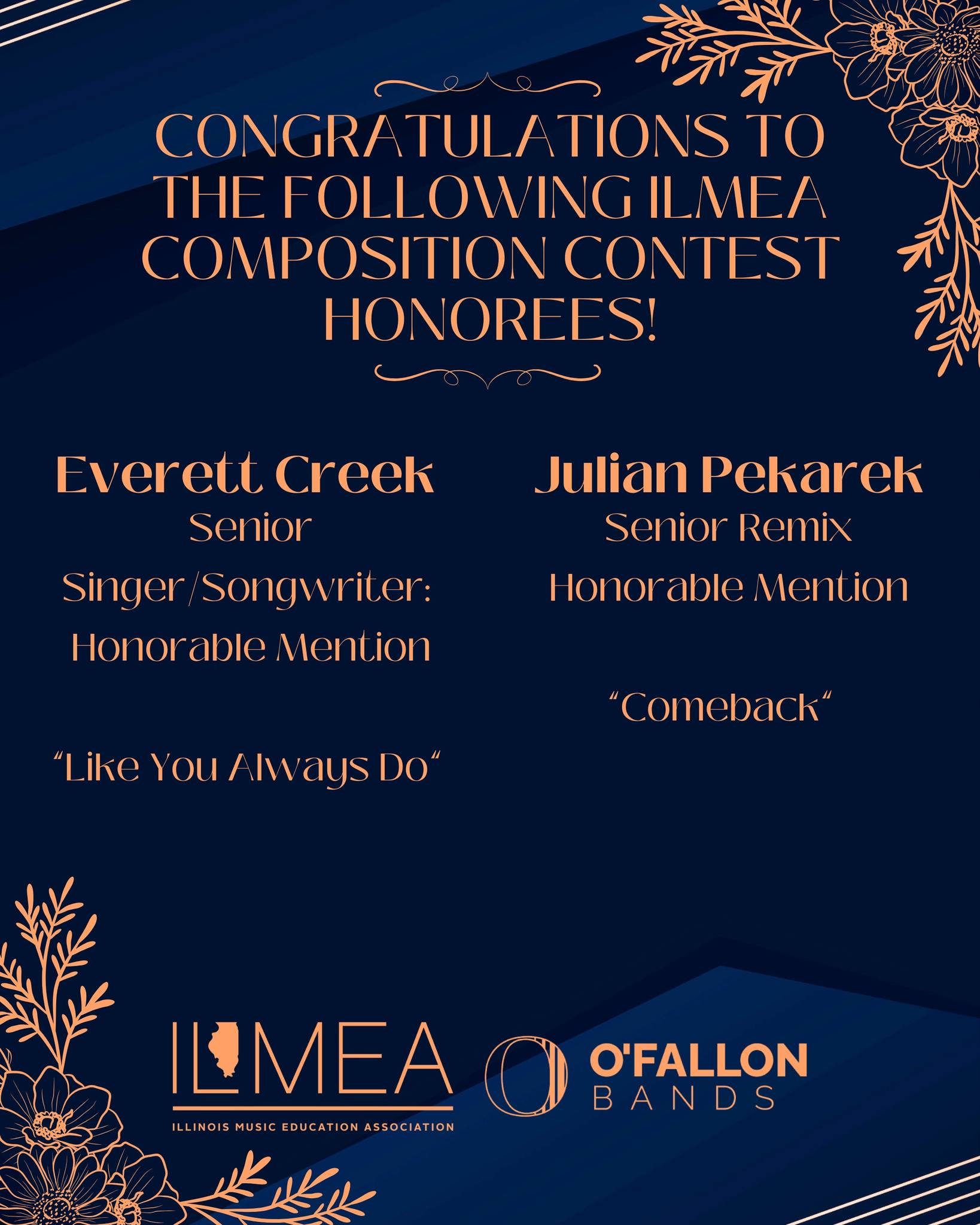 Congratulations to our outstanding students selected for the ILMEA District 6 Concert Festival!